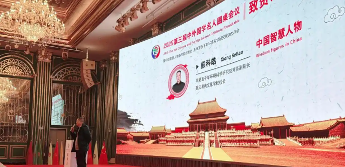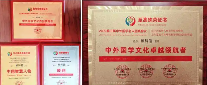 2025年12月27日,第三届中外国学名人圆桌会议暨中国智慧人物春节联欢晚会及华夏五千年环境科学研究院2025年会在安徽合肥隆重举行。国学名家、华夏五千年环境科学研究院常务副院长、重庆易典文化学校校长熊科皓受邀出席,担任案例分享会主讲人,凭借深厚的国学造诣与丰富的实践经验,在本次盛会上一举斩获 “中外国学文化卓越领航者”“中外国学文化杰出传播者”“中国智慧人物” 三项荣誉,同时获聘为本次活动的顾问,再度彰显其在国学文化传播领域的深厚积淀与行业影响力。